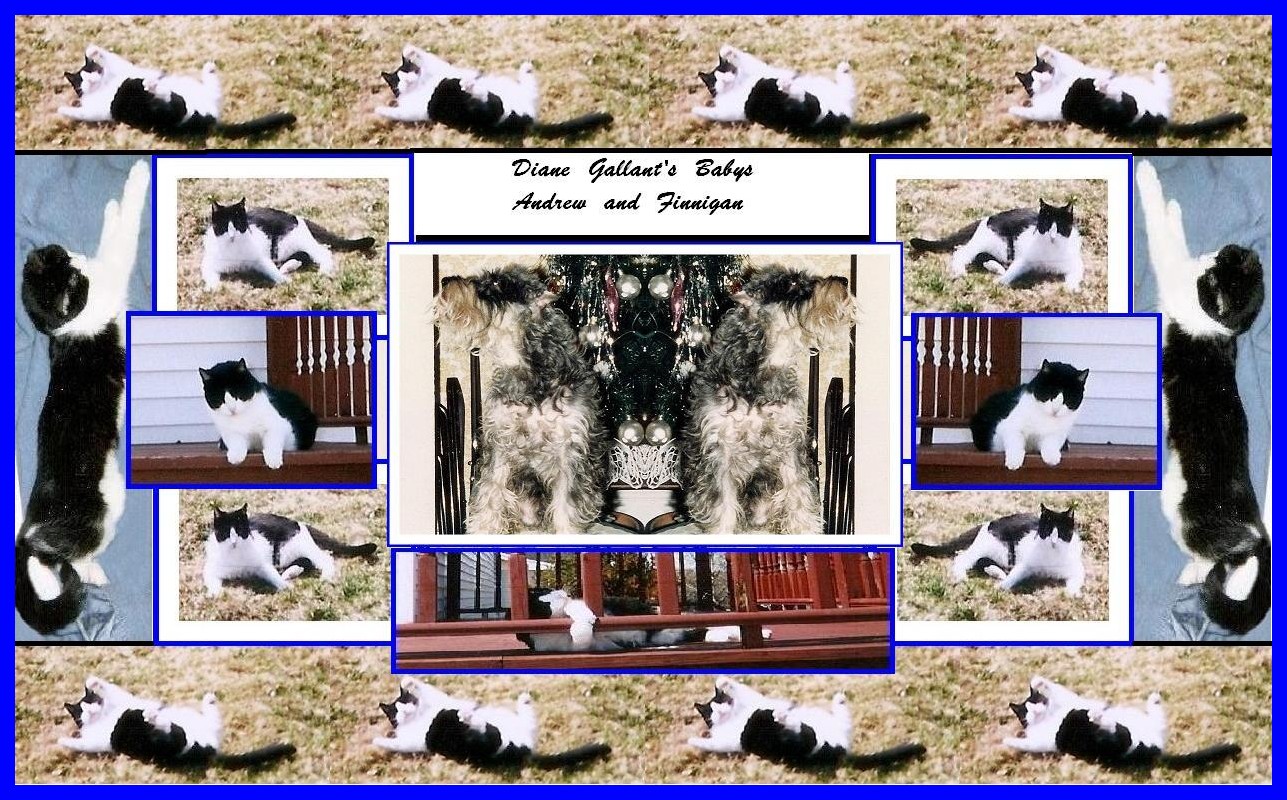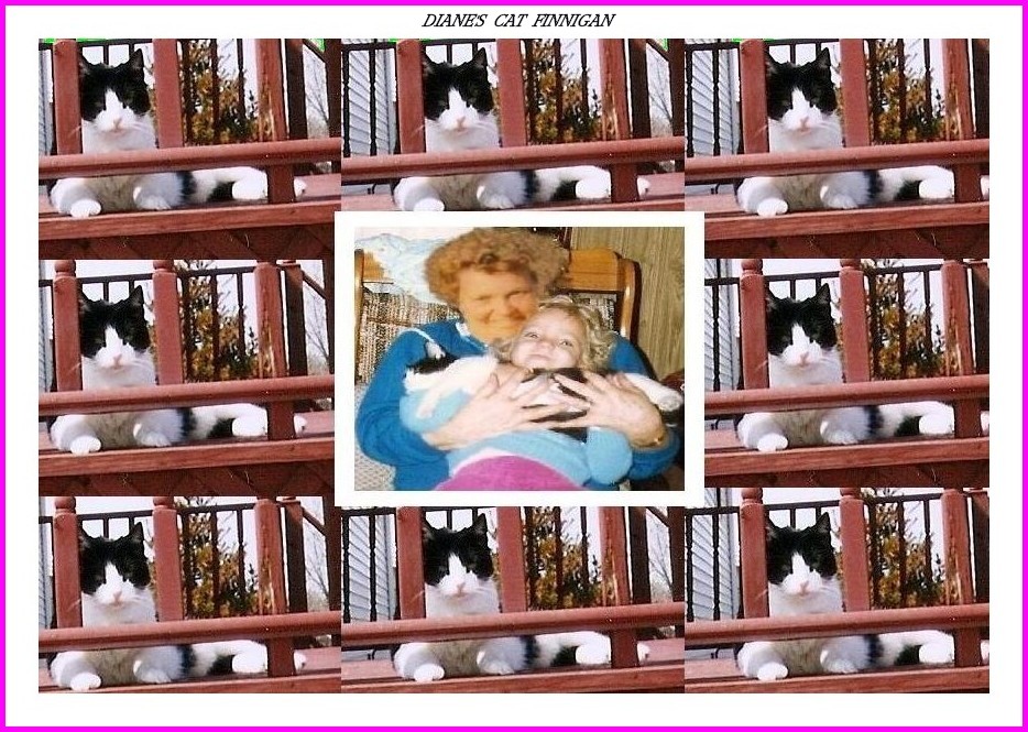 Diane's cat Finnigan featured here, in the center photo is June O'Brien, Diane's sister-in-law, and June's grand-daughter April, holding the cat Finnigan.
