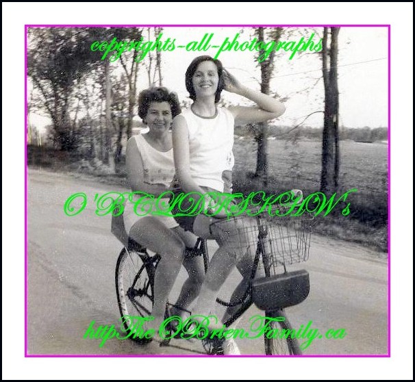 ~ ![]() Pictured below is my Favorite Aunts peddling their ass' back from Cooksville in the1960s. (bicycle built by nickie)
